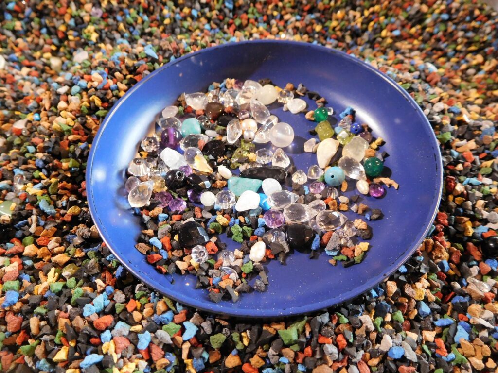 砂の中から天然石やパワーストーンを探す体験ができ、